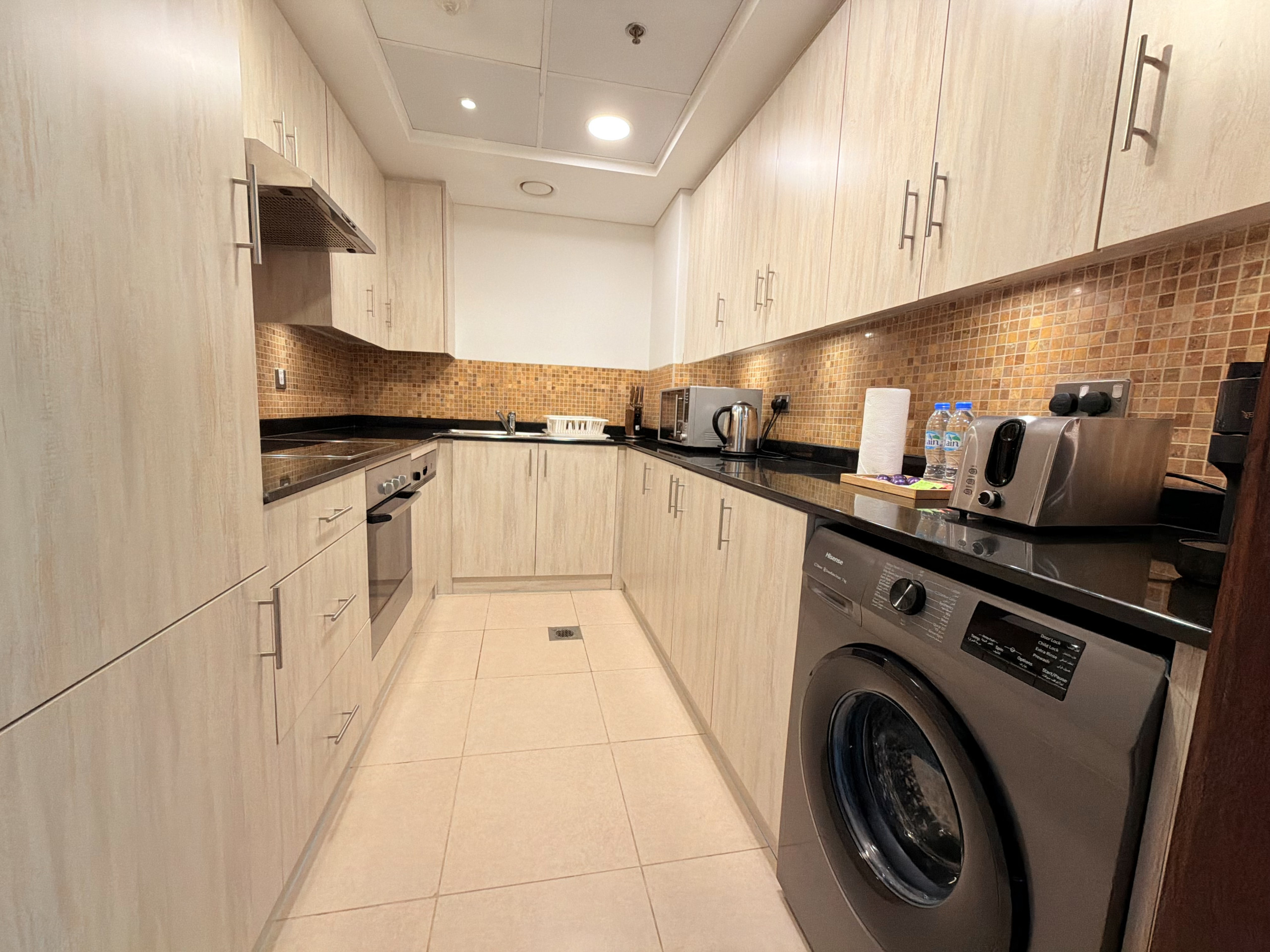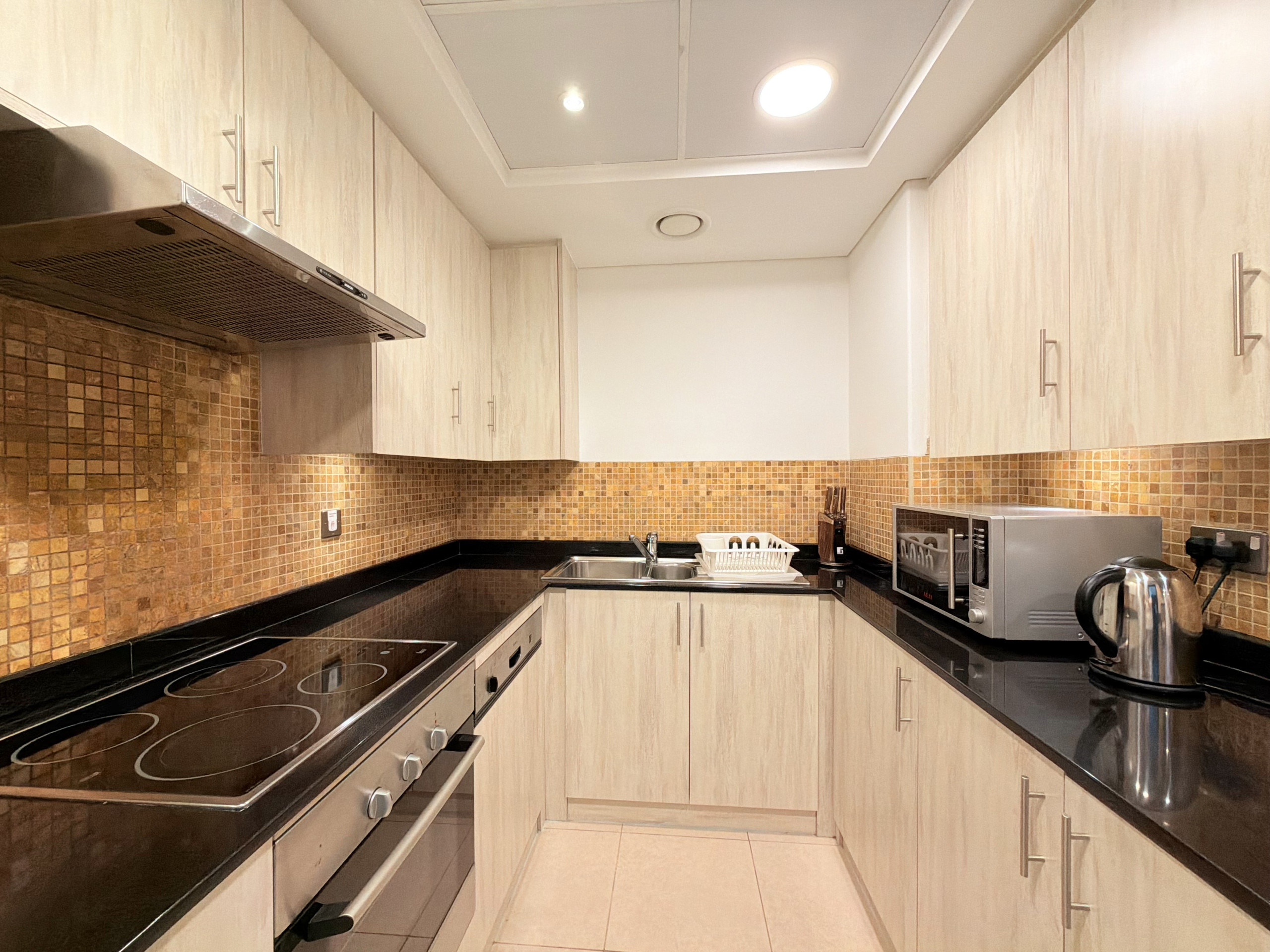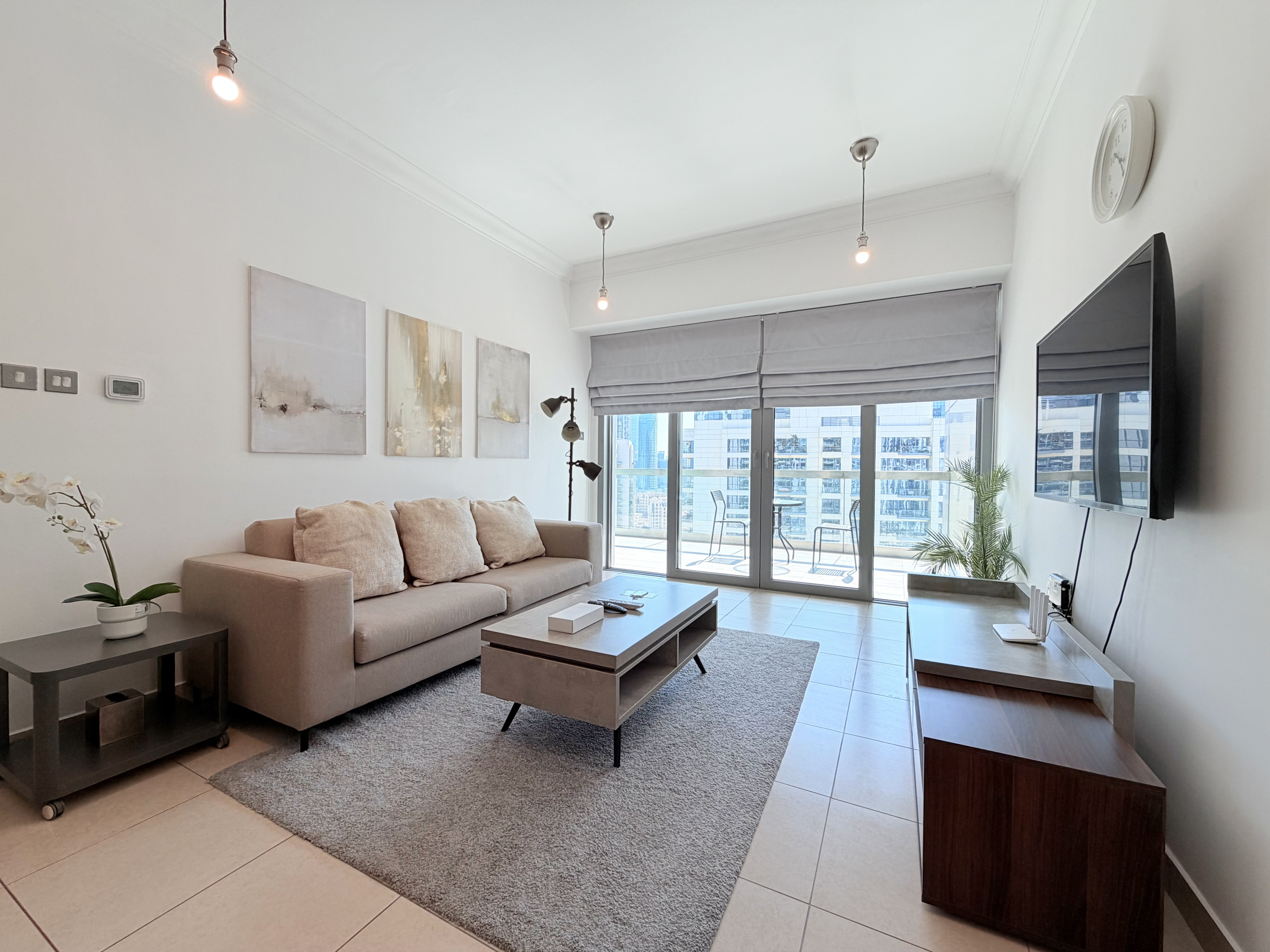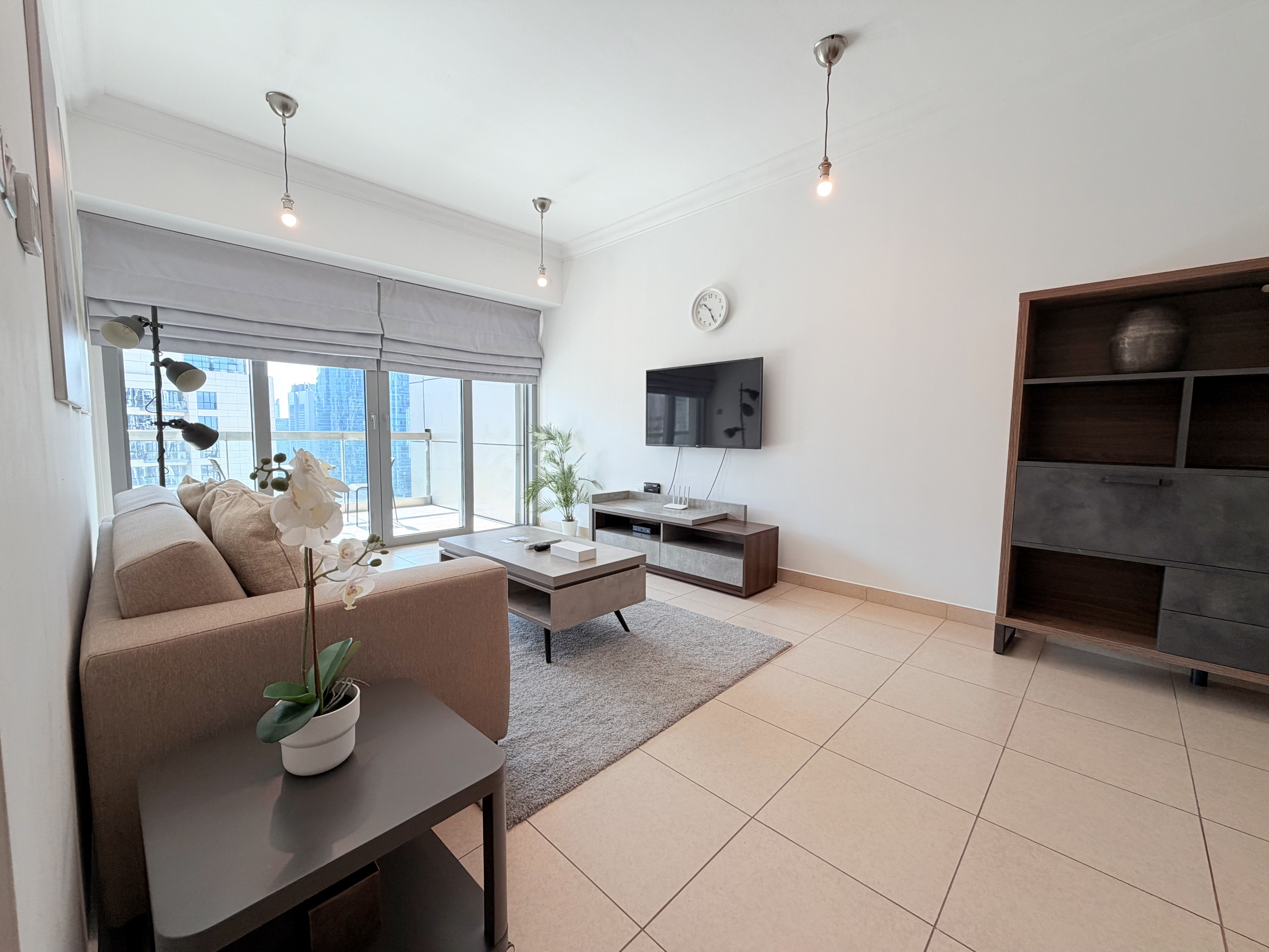 This fully-furnished one bedroom apartment features spacious lounge and dining areas, a fully equipped kitchen with high quality appliances, The private balcony also provides guests a view over the business district of Downtown Dubai.