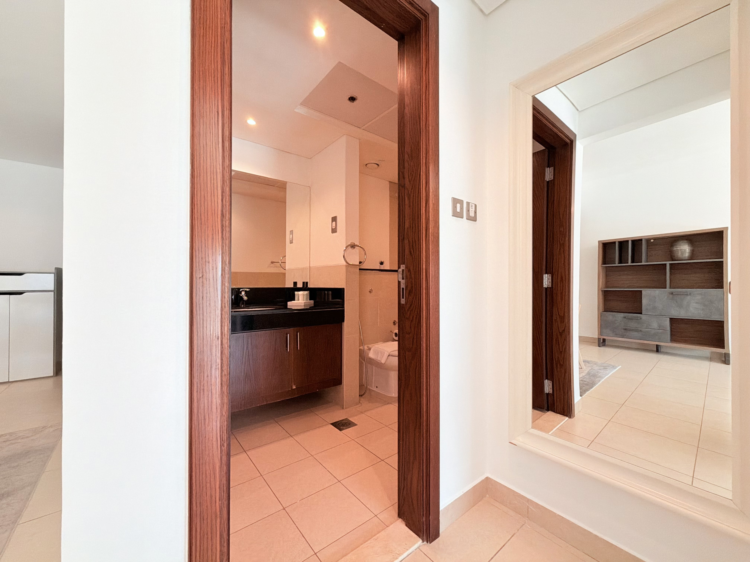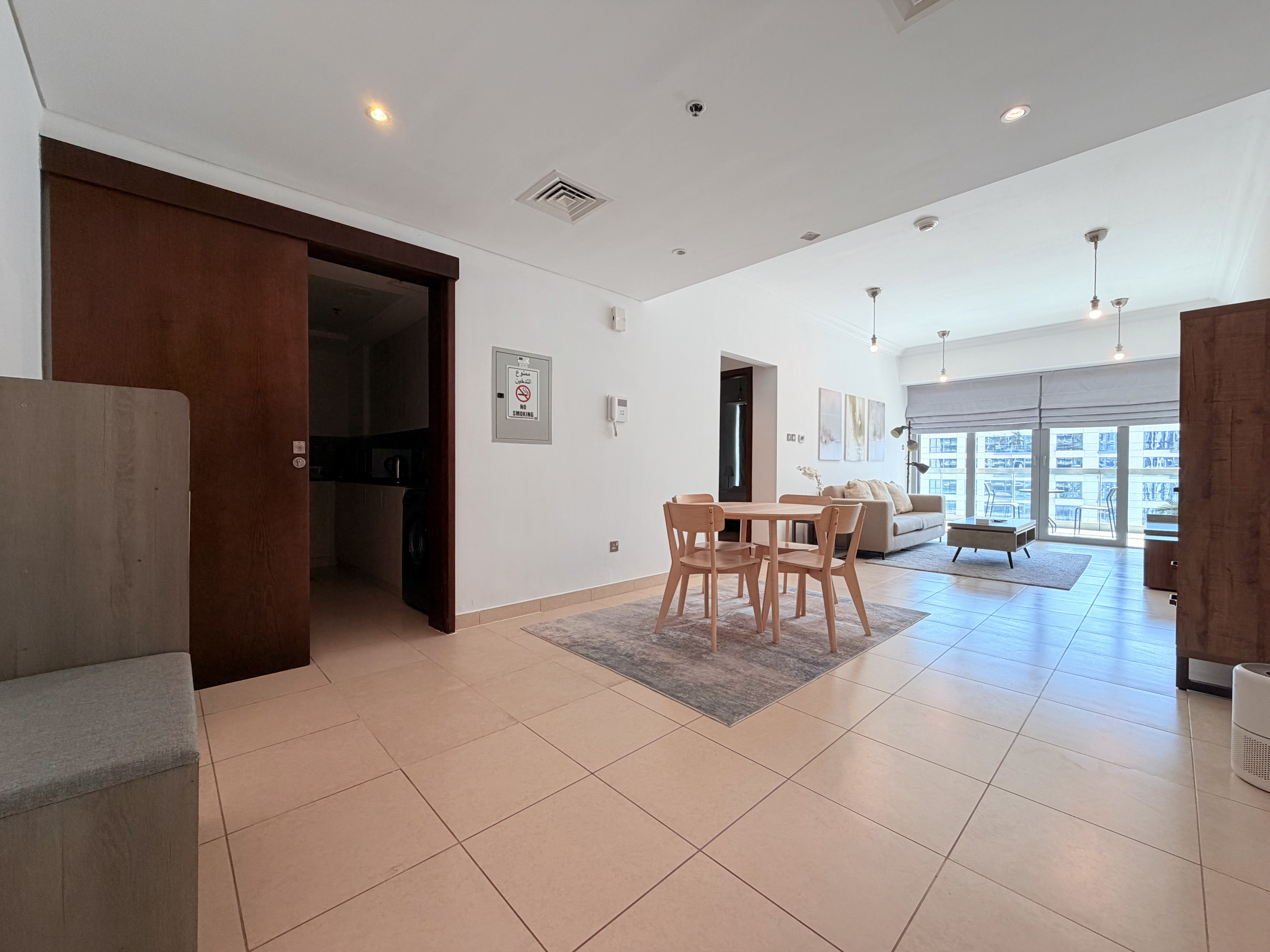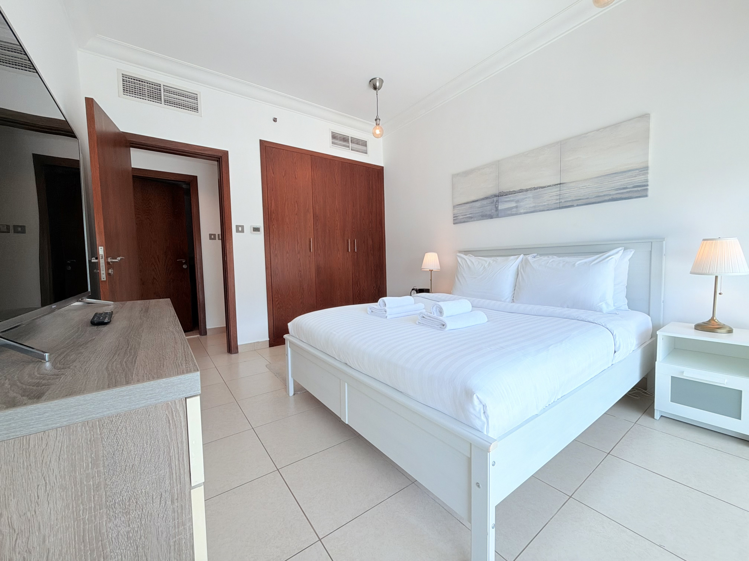 Welcome to our newly built and freshly set up hotel apartment studio located at Seven Hotel and Apartments in the picturesque Palm Jumeirah. With its cool and inviting ambiance, this studio promises a delightful stay for solo travelers or couples.