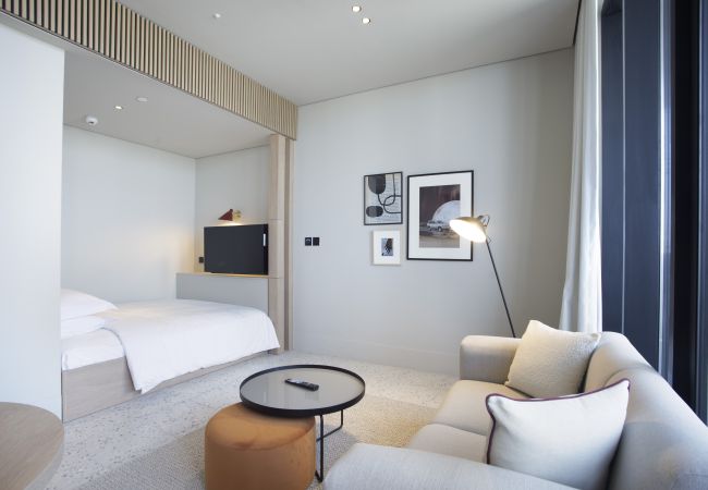 квартира-студия в Dubai , вместимостью на 2 чел. Проживание из 35 кв.м. Размещение имеет лифт, зеленая зона, Терраса, стиральная машина, сушилкой для белья, утюг, сейф, Доступ в интернет (wi-fi), Фен, Балкон, Тренажерный зал, Сигнализация, кондиционер, бассейн жилого комплекса, гараж в этом же здании, 1 телевизор. Отдельная кухня, оснащена газовой плитой, оборудовано холодильник, микроволновая печь, морозильная камера, столовые приборы, кухонная утварь, тостер и Чайник.
